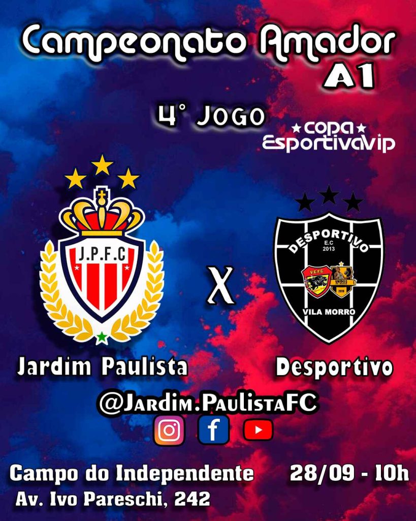 QUARTO JOGO – 4ª Rodada – 28/09/2025 – 10:00h – Campo Independente – Campeonato Amador 2025 21 de setembro de 2025