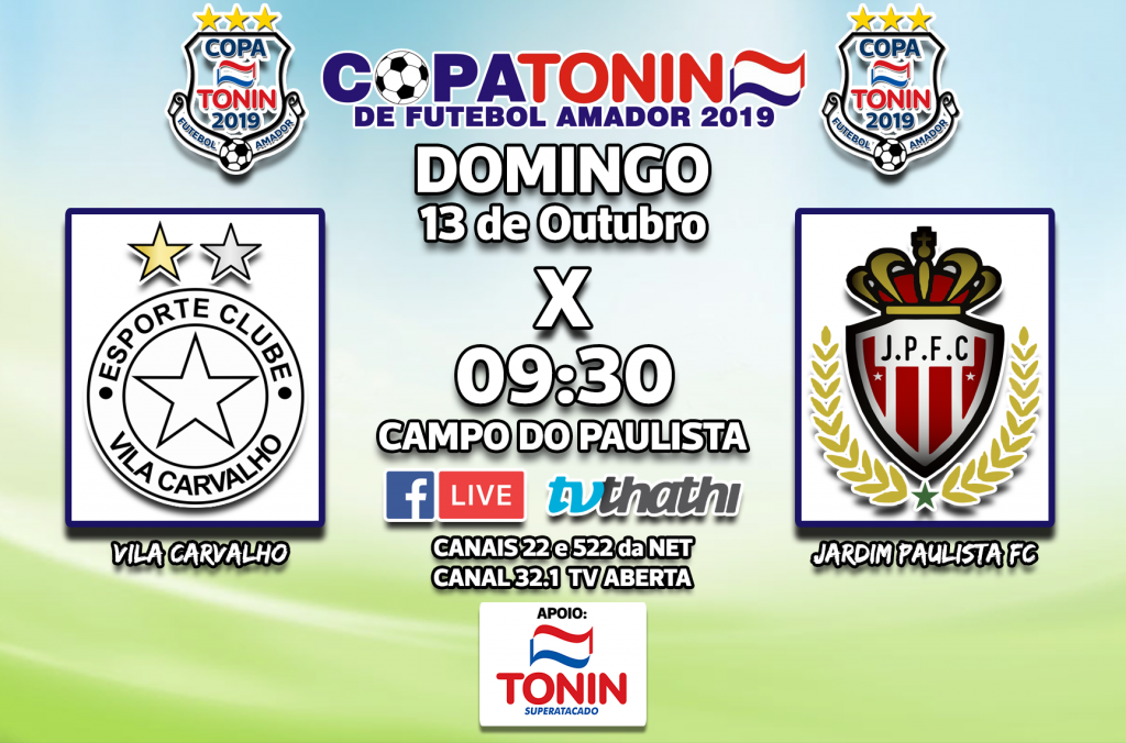NONO JOGO – 13/10/2019 – 09:30h – Campo Do Paulista – Copa Tonin de Futebol Amador 2019 30 de setembro de 2019 JD PAULISTA x VILA CARVALHO