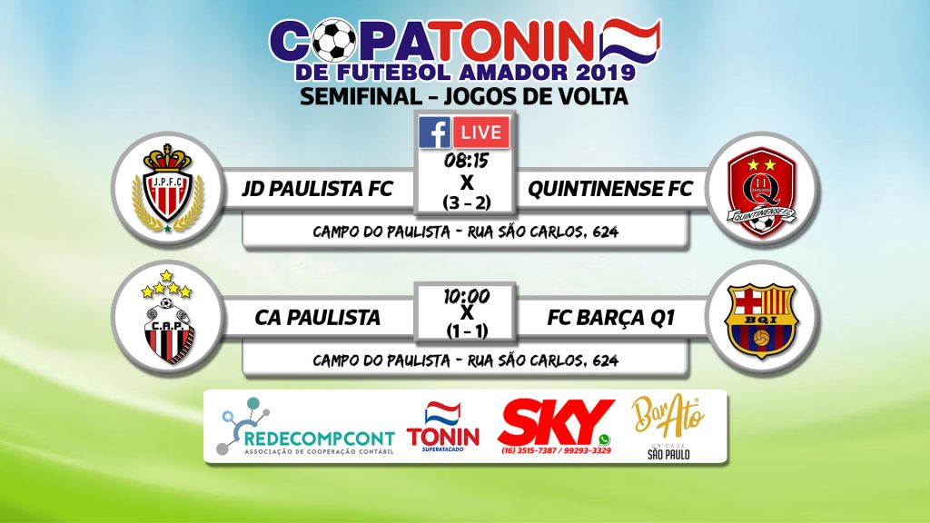 DÉCIMO QUINTO JOGO – 24/11/2019 – 08:00h – Campo Do Paulista– Copa Tonin de Futebol Amador 2019 20 de novembro de 2019
