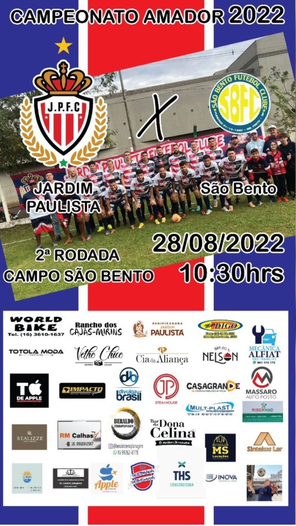 SEGUNDO JOGO – 2ª Rodada – Dia: 28/08/2022 – Hora: 10:30h – Campo do São Bento – Campeonato Amador 2022 27 de agosto de 2022